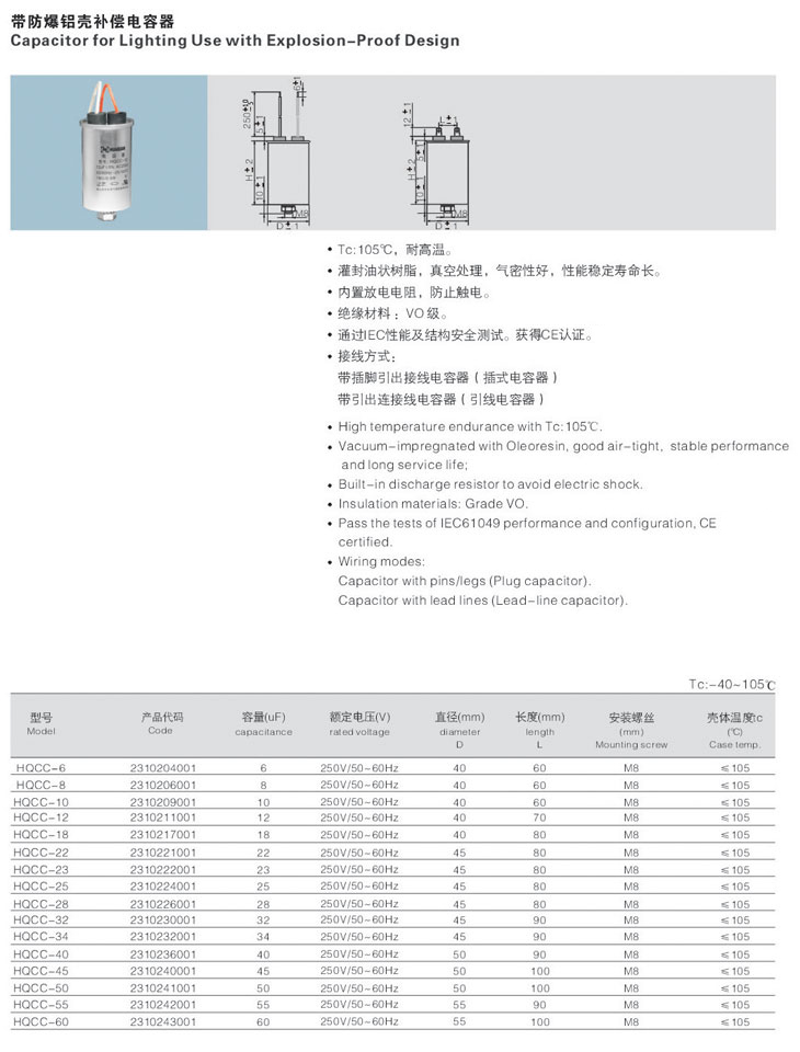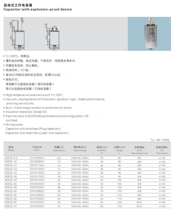 1. Tc:105℃,耐高温。