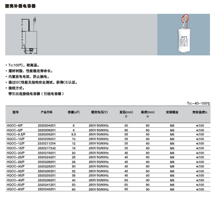 - 特性: 1. Tc:100℃,耐高温。